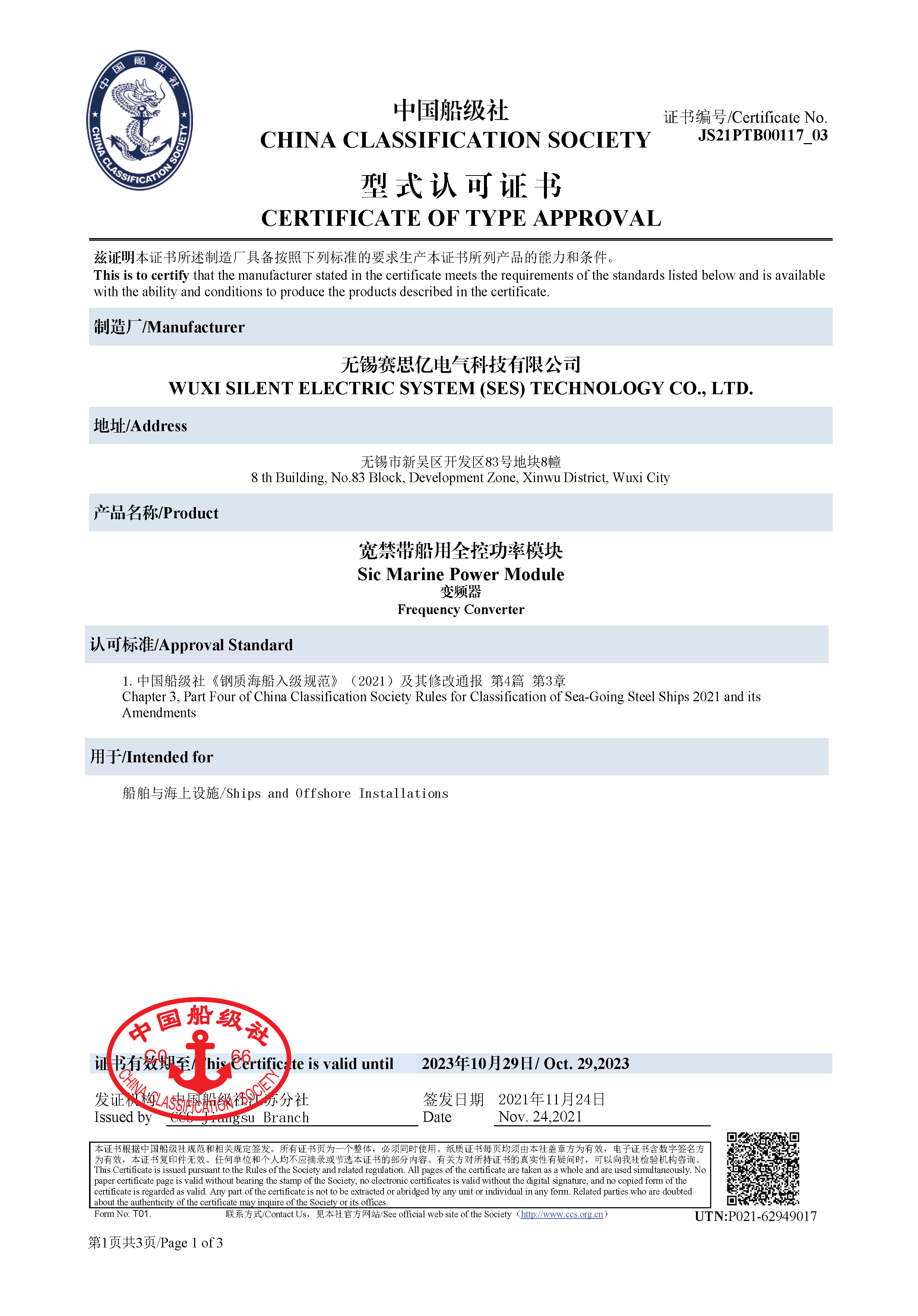 低壓船用核心功率模塊系列產(chǎn)品獲得了中國船級社、法國船級社、挪威船級社等主流船級社的型式認可,