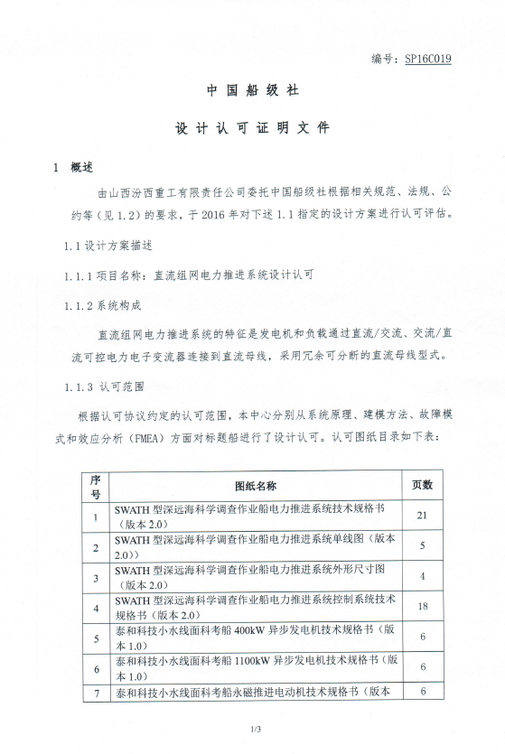 公司直流組網(wǎng)電力推進(jìn)系統(tǒng)取得中國(guó)船級(jí)社設(shè)計(jì)認(rèn)可