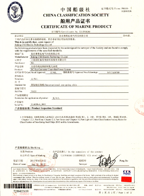 隨著首船合同的順利執(zhí)行,汾西重工的直流組網(wǎng)系統(tǒng)在2016年8月通過中國船級社規(guī)范所的原則性認(rèn)可,從技術(shù)路線、認(rèn)證方法上確定了直流組網(wǎng)系統(tǒng)對于船級社標(biāo)準(zhǔn)的符合性,為后續(xù)系統(tǒng)迅速通過船檢并搶占市場奠定良好基礎(chǔ)。