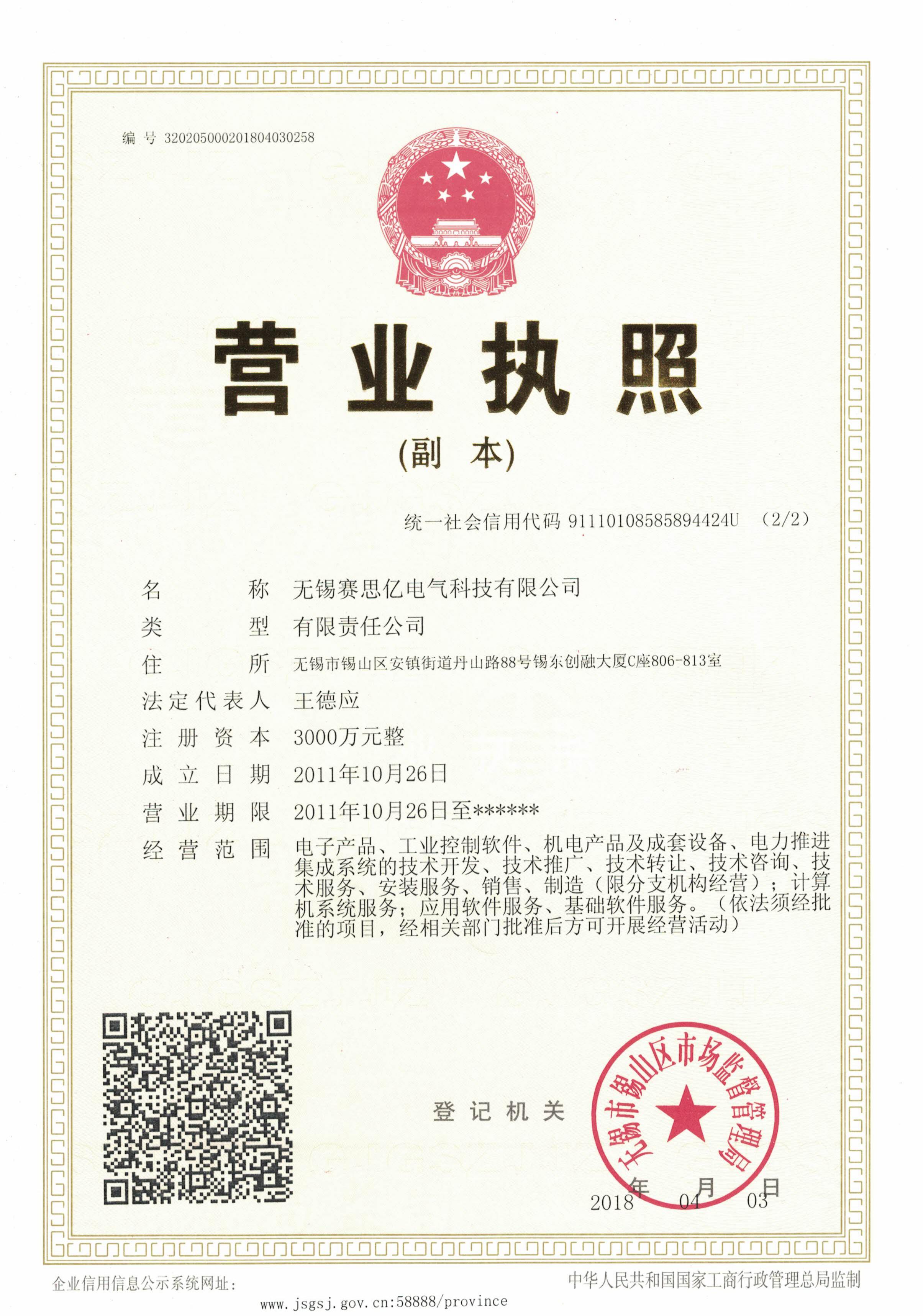 為了適應公司未來經(jīng)營戰(zhàn)略及發(fā)展方向,北京賽思億電氣科技公司自2016年起逐步將生產(chǎn)基地與研發(fā)中心遷移至無錫,以無錫為中心輻射全國,并于近日取得了無錫市錫山區(qū)市場和質(zhì)量監(jiān)督管理局換發(fā)的《營業(yè)執(zhí)照》,完成了工商變更登記手續(xù),正式更名為“無錫賽思億電氣科技有限公司”。更名后,賽思億的相關股權、人員組成、內(nèi)部架構和各類合同、合作協(xié)議均保持不變。