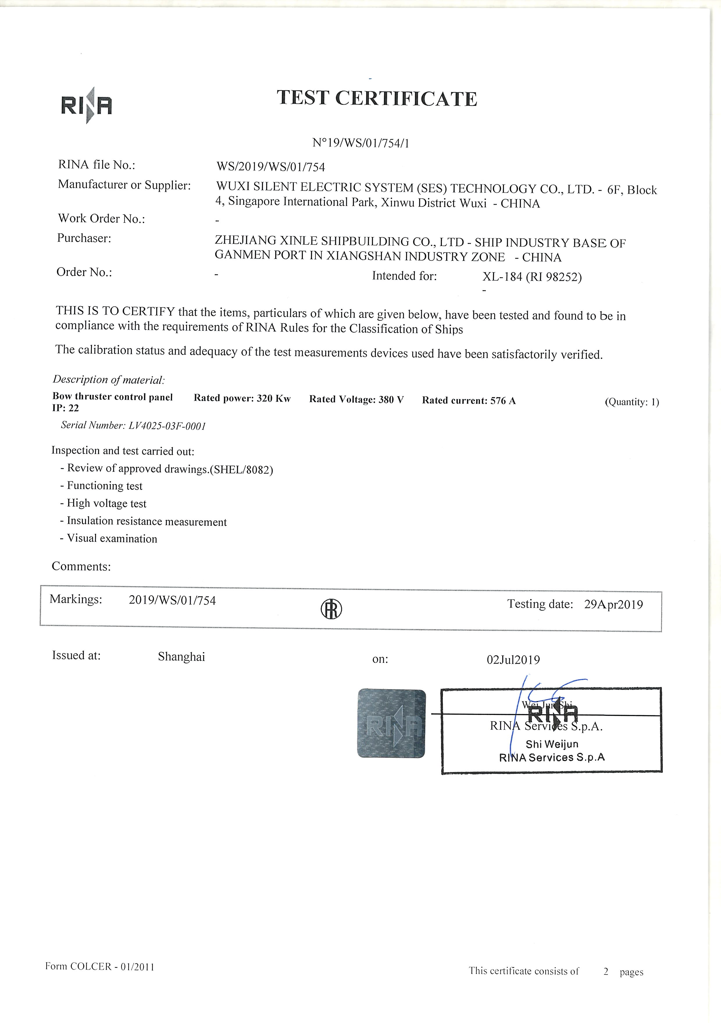 2020年04月10日上午,由浙江新樂造船股份有限公司為瑞士Nova Marine Carriers公司建造,裝備了賽思億艏側(cè)推國產(chǎn)推進(jìn)變頻電控設(shè)備和艏側(cè)推電機(jī)的6000噸雜貨船1號(hào)船“野牛”輪離開公司碼頭前往寧波北侖大榭交船,該船舶的側(cè)推進(jìn)系統(tǒng)由無錫瑞風(fēng)船用推進(jìn)器有限公司集成。