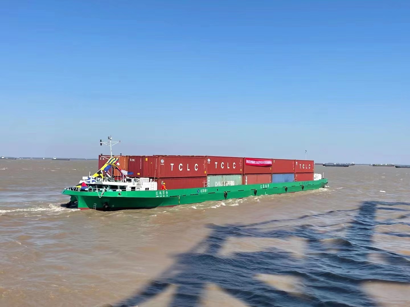 【以夢為馬,不負韶華】全國首艘120標箱純電動內河換電集裝箱船在江蘇太倉首航