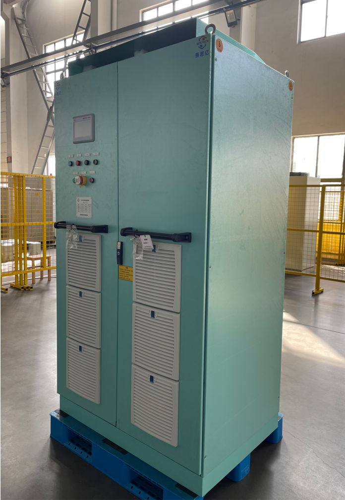 該船動(dòng)力來源為常規(guī)柴油推進(jìn)主機(jī),系統(tǒng)配置一臺(tái)350kW的軸帶發(fā)電機(jī),軸帶電機(jī)通過齒輪箱與主機(jī)自由端相連接,確保主機(jī)在正常使用轉(zhuǎn)速范圍內(nèi),系統(tǒng)能夠發(fā)出足夠的功率,供應(yīng)全船負(fù)荷。目前變頻電控設(shè)備已發(fā)至客戶指定地點(diǎn)。