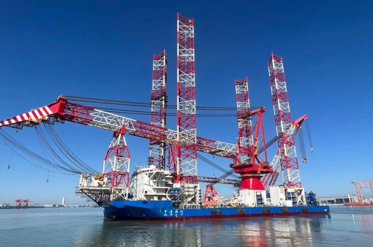 由亨通集團(tuán)投資、上海佳豪設(shè)計(jì)、江蘇大津重工建造,搭載中船賽思億全套電力推進(jìn)系統(tǒng)總成的1600T大型深遠(yuǎn)海風(fēng)電安裝平臺(tái)“亨通海悅”近日在大唐海南儋州120萬千瓦海上風(fēng)電項(xiàng)目投入使用并成功安裝了12臺(tái)海上風(fēng)機(jī),順利完成首秀。