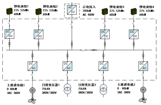 新時(shí)代2020純電池動(dòng)力游船,船長(zhǎng)約29.7米,型寬約9米,總載客量約82人,采用了賽思億的直流組網(wǎng)變頻電控設(shè)備,整船裝備電池容量1100kWh,總推進(jìn)功率達(dá)到160kW,并于2020年正式交付并投入使用。