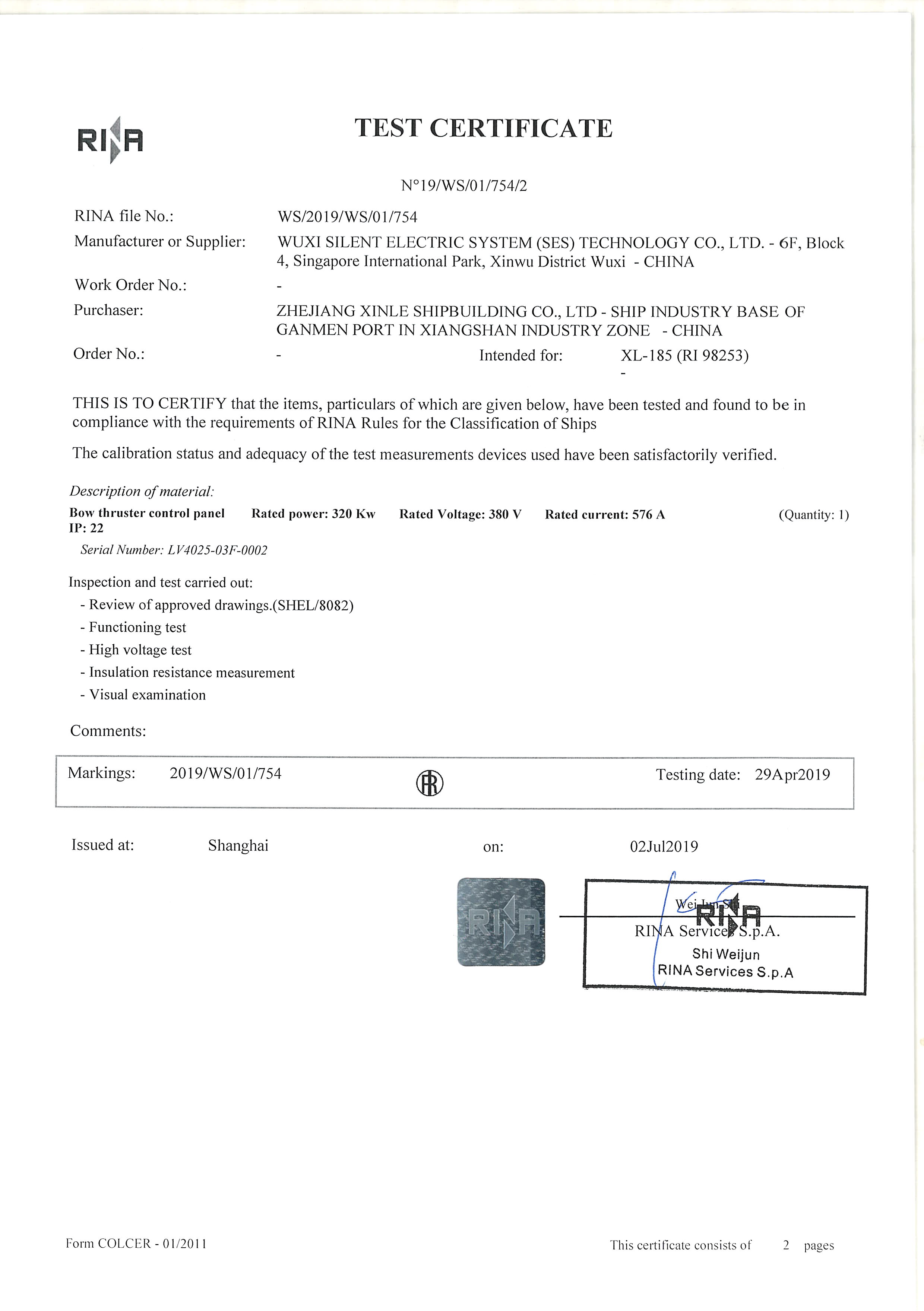 2020年04月10日上午,由浙江新樂造船股份有限公司為瑞士Nova Marine Carriers公司建造,裝備了賽思億艏側(cè)推國產(chǎn)推進(jìn)變頻電控設(shè)備和艏側(cè)推電機(jī)的6000噸雜貨船1號(hào)船“野牛”輪離開公司碼頭前往寧波北侖大榭交船,該船舶的側(cè)推進(jìn)系統(tǒng)由無錫瑞風(fēng)船用推進(jìn)器有限公司集成。