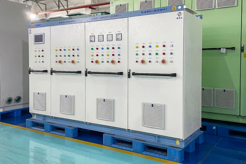 該船船長73m,船寬13.8m,吃水3.8m,可搭載110個標準集裝箱,賽思億為其提供一套基于直流組網技術的S-Renewable新型動力系統(tǒng)和集裝箱式電池系統(tǒng),其核心設備采用賽思億自主知識產權的國產變頻電控設備,日前已正式生產完畢,完成CCS船檢取證工作,等待交付船廠。集裝箱式電池系統(tǒng)配置2個集裝箱,整船鋰電池容量共計3080kWh,目前正在緊鑼密鼓的生產中。