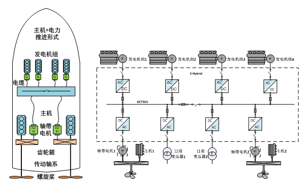 相比于主機(jī)推進(jìn)和電力推進(jìn)船舶,S-Hybrid主機(jī)+電力推進(jìn)混合動(dòng)力綜合解決方案具有以下優(yōu)勢(shì):