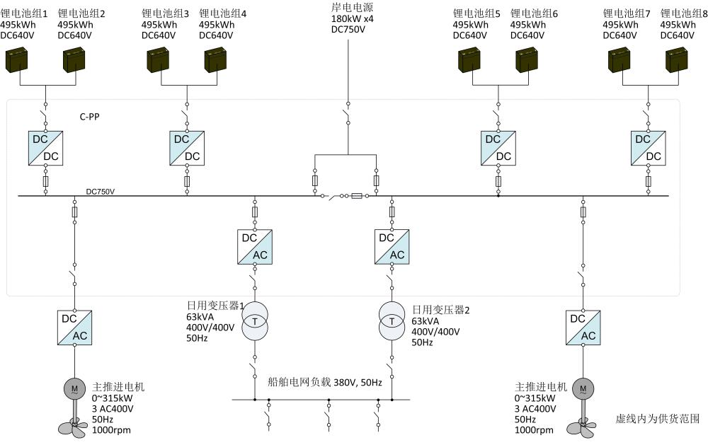 賽思億為3000噸散貨船提供的純電池動(dòng)力直流組網(wǎng)電力推進(jìn)系統(tǒng)主要包括:直流母線變頻電控設(shè)備等,該系統(tǒng)采用鋰電池綠色能源,可實(shí)現(xiàn)“零排放”綠色航運(yùn)。